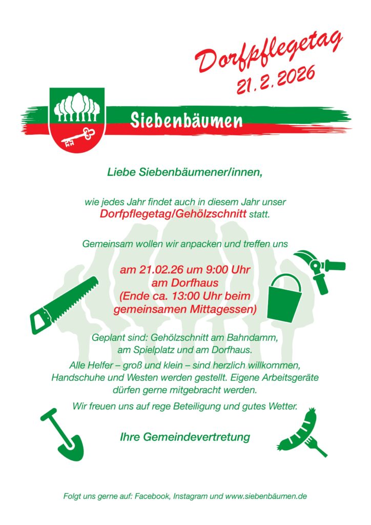 Dorfpflegetag/Gehölzschnitt am 21.02.2026 Veröffentlicht am 7. Februar 20267. Februar 2026 von Mike Kloke